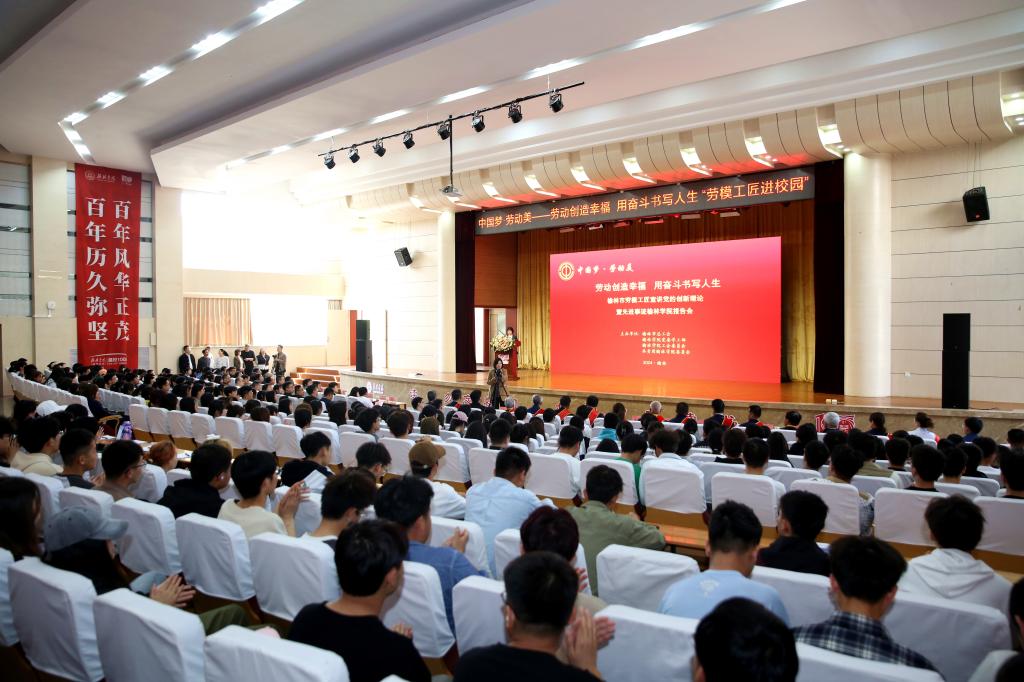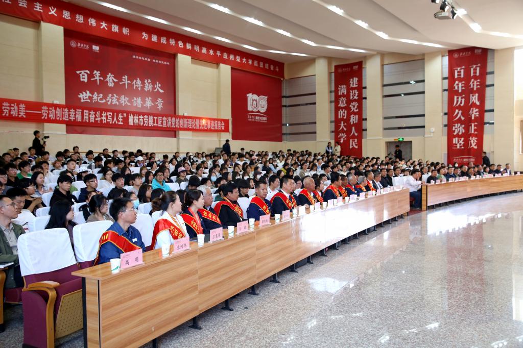 4月15日下午,“中国梦·劳动美——劳动创造幸福 用奋斗书写人生”榆林市劳模工匠宣讲党的创新理论暨先进事迹报告会在榆林学院隆重举行。党委副书记、校长康伟为16名劳模工匠献花并颁发“榆林学院校外辅导员”聘书,党委副书记尚爱军致辞,学工部、团委负责人,各分会主席、各学院党总支副书记、专职辅导员以及青年学生干部代表等450余名师生参加。报告会由工会负责人主持。